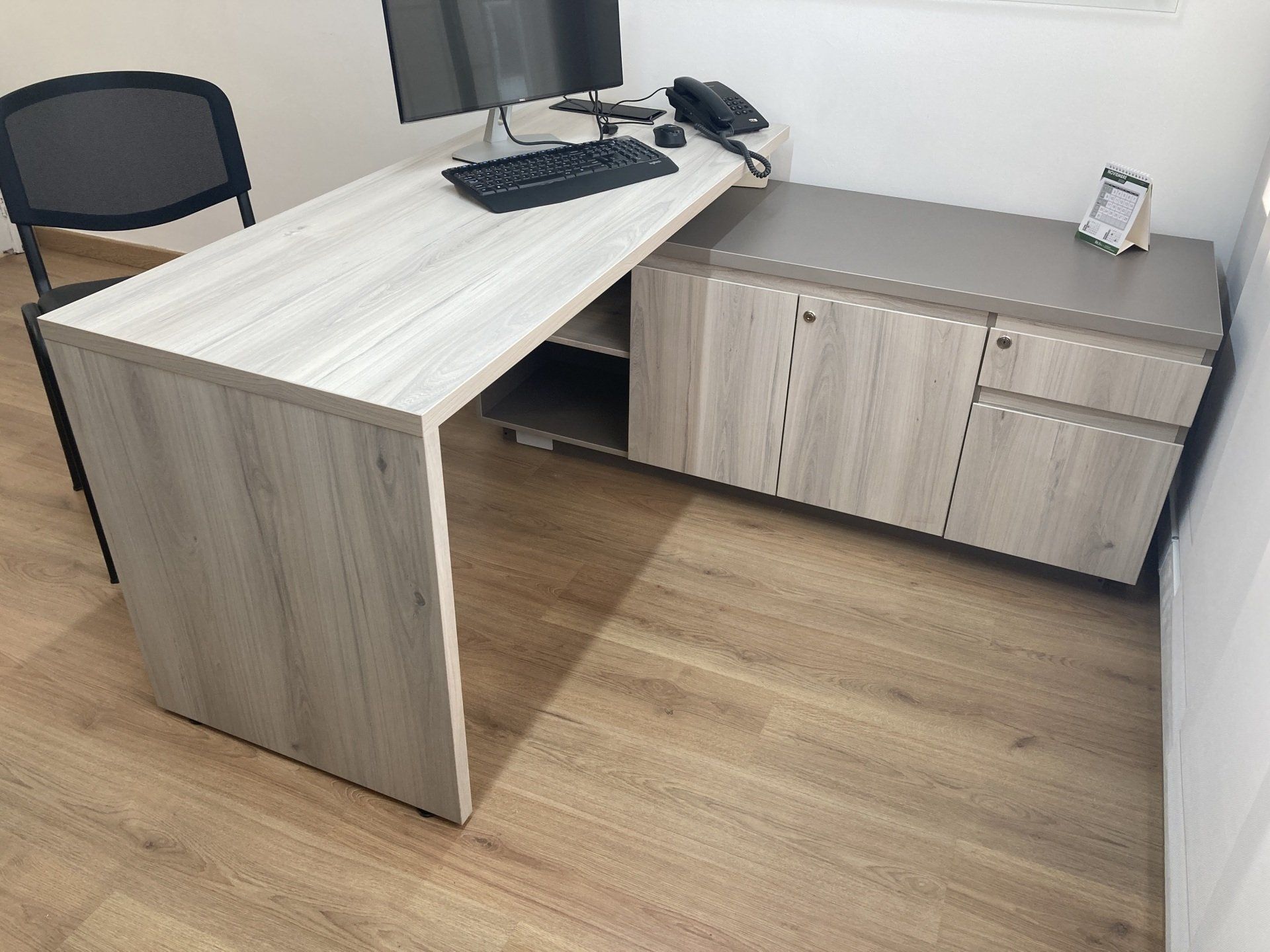 Estaciones LINEA SQUARE cuando combinamos superficies melamínicas con almacenajes, costaos y piezas metalmecanicas.